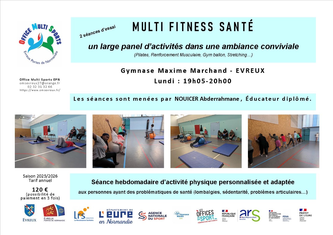 L'action SPORT SANTÉ est de promouvoir la prescription médicale ou non d'activité physique et sportive en offrant un cadre dans lequel le parcours du participant et les modalités de son suivi sont définis. Le SPORT SANTE est la suite logique de nos 2 autres actions Bougez-Vous avec Nous et Centre Médico Sportif. Au fil du temps, l'OMS EVREUX, structure porteuse du Centre médico sportif, a développé une très bonne connaissance du milieu sportif ébroïcien (création d'un répertoire sportif), a agrandi son réseau et travaille dorénavant avec ses partenaires (travail d'équipe).